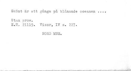 //// Skönt är att gånga på blånande oceanen ... Utan prov. //// S.U. 21119. Visor, IV s. 227. //// nosd MUS. ////