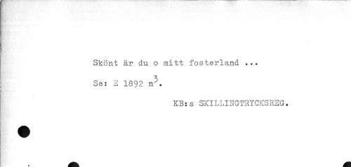 //// Skönt är du o mitt fosterland ... Se: S 1892 n5. //// KB: s SKILLIITGTRYCKSREG. ////
