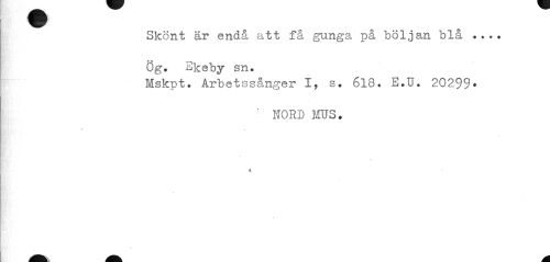 //// Skönt är endå att få gunga på böljan blå ... Ög. Ekeby sn. //// Mskpt. Arbetssånger I, s. 618. E.U. 20299* //// ' NORD MUS. //// • , //// i //// \ ////