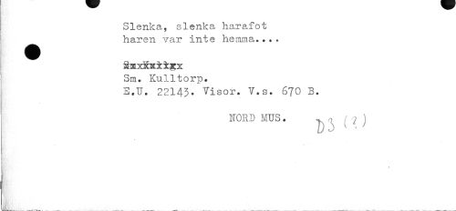 //// Slenka, slenka harafot ^^ haren var inte hemma... //// Sm. Kulltorp. //// E.U. 22143- Visor. V.s. 6?0 B. //// NORD MUS. //// J,_ ^ ___ __ _ ^^ ___ ..___u _ . ^ _ __ A __( ^^ ___.. ////
