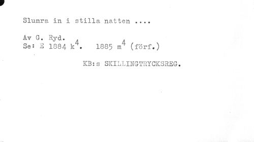 //// Slumra in i stilla natten ... Av G. Syd. A A //// Se: S 1884 k . 1885 ni4 (förf.) //// i //// KB: s SK ILLING TE Y CK 8 RE G. ////