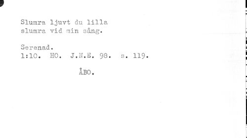 //// i= //// r //// ! //// Slumra ljuvt du lilla j //// slumra vid min säng. p //// Serenad. \ //// 1:10. HO. J.iT.E. 98. s. 119* [ //// r //// ÅBO. ! //// N //// I //// r- //// I ////
