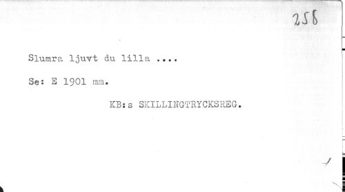 //// 2Sl //// Slumra ljuvt du lilla . Se: E 1901 mm. //// KB:s SKILLIHGTEYCKSHEG. //// — //// i //// \ //// i i ////