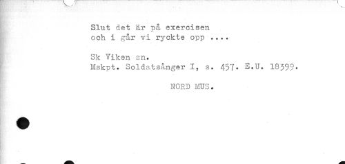 //// Slut det är på exercisen och i går vi ryckte opp //// Sk Viken sn. //// Mskpt• Soldatsånger I, s. 457- E.U. 18399- //// NORD MUS. ////