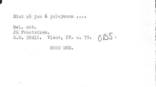//// I //// Slut på jun å julejusom . ... //// i l //// Mel. not. | //// Jä Frostviken. ~ i //// E.U. 20411» Visor, IV. s. 79» Q % ' //// fe //// i //// NORD MUS. 1 //// I //// i ////
