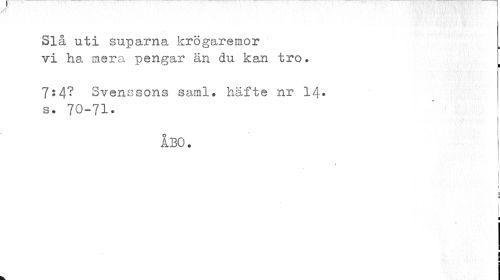 //// Slå uti suparna krö gare mor vi ha mera pengar än du kan tro. //// 7:4? Svenssons saml* häfte nr 14* s. "JO-'! 1. //// ÅBO. //// / i //// u ¦ //// i //// V ¦ ////