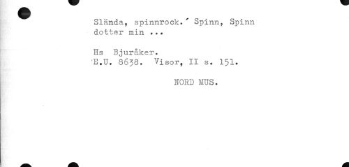//// Slända, spinnrock.' Spinn, Spinn dotter min ?.? //// Ils Bjuråker. //// 4E.U. 86J8. Visor, II s• 151. //// NORD MUS. ////