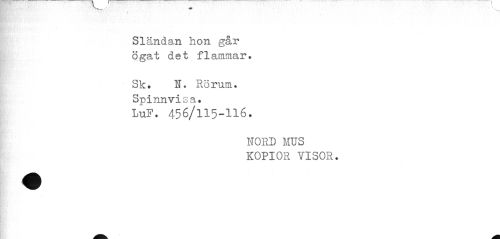 //// v . //// ¦ //// SIändan hon går ögat det flammar. //// ¦ //// Sk. II. Rörum. //// Spinnvisa. //// LuF. 456/115-116. //// HORD MUS KOPIOR VISOR. ////