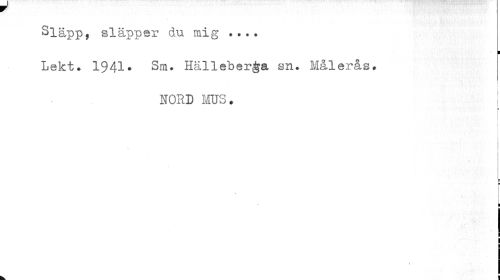 //// Släpp, släpper du mig ... //// i //// Lekt. 1941- Sm. Hälleber&a sn. Målerås. //// NORD MUS. //// : //// i //// ¦ //// a //// i a ////