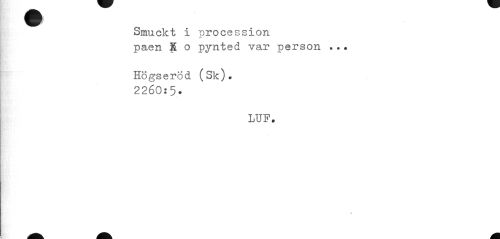 //// Smuckt i proce //// S S 10 n //// paen K o pynted var person ... Högseröd (Sk). //// 2260:5. //// LUF. ////