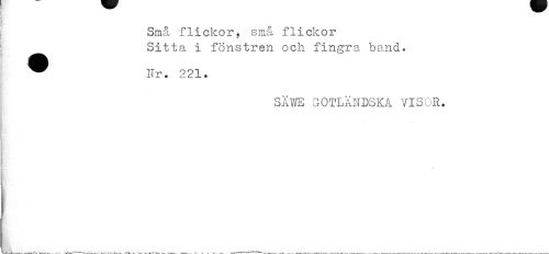 //// Små flickor, små flickor //// Sitta i fönstren och fingra band. //// ^ Nr. 221. //// SÅYffi GOTLÄNDSKA VISOR. //// ___ ////
