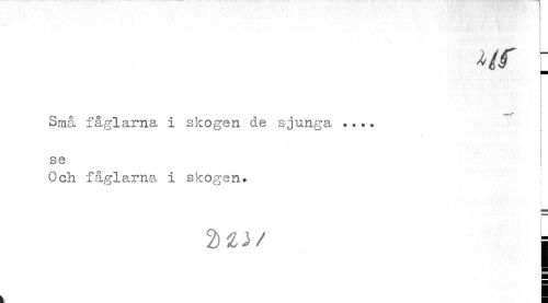 //// Hf : //// i I //// I //// O //// Små faglarna i skogen de sjunga ... j //// se //// Och fåglarna i skogen. ; //// i i //// 2)Zi/ | //// i ////