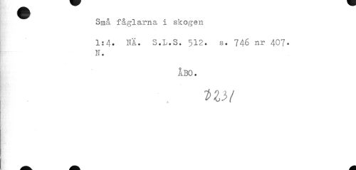 //// Små fåglarna i skogen //// 1:4. NÄ. S.L.S. 512. s. 746 nr 407. N. //// ÅBO. //// nu ////