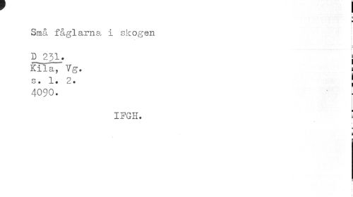 //// I //// i f //// i //// Små fåglarna I skogen //// [ i //// B 231. j //// Kila, Vg. 1 //// s. 1. 2. I //// 4090. //// IFGH. ! //// I ¦ ////