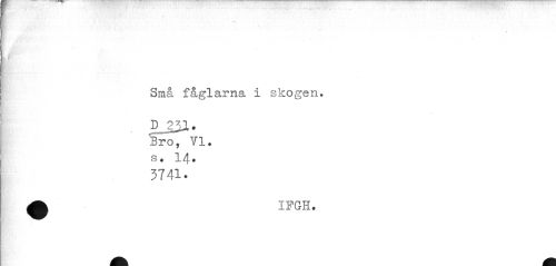 //// yf //// Små fåglarna i skogen. //// D 2£U //// Bro, VI. //// B «- 1 /l # //// 3741. //// A IFGH. ////
