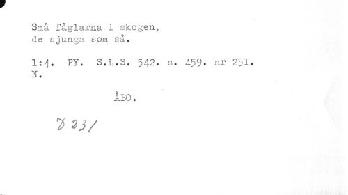 //// Små fåglarna i skogen, de sjunga som så. //// 1:4. PY. S.L.S. 542. s. 459. nr 251. n. //// ÅBO. //// 2 93/ ////
