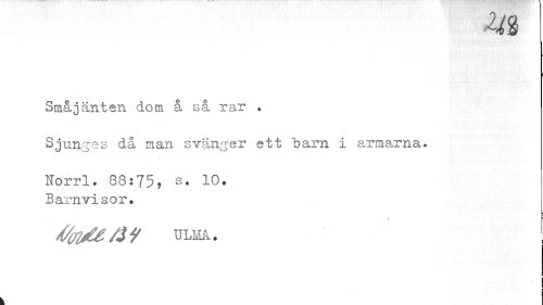 //// m //// Småjäntan dom å så rar . //// Sjunges då nian svänger ett barn i armarna* //// Norrl. 83:75? s. 10. //// Barnvisor. //// i //// 4/oi/£ /J f ULMA . //// \ ////