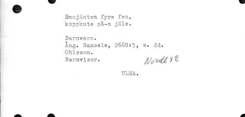 //// Smojäriten fyre fem, koppkute på-n ja,le. //// Barnvers. //// ing. Ramsele, 2668:5, s. 44. Ohlsson. //// Barnvisor. f\J(/w££ $ ^ //// ULMA. ////