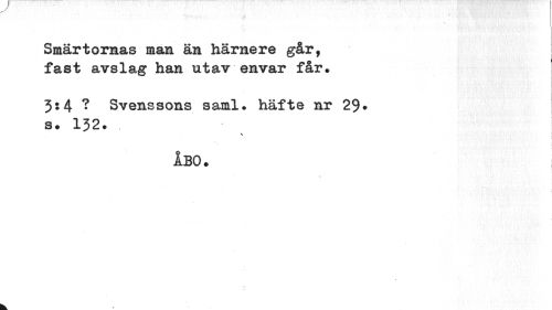 //// Smärtornas man än härnere går, fast avslag han utav envar får. //// 3:4 ? Svenssons saml. häfte nr 29* s. 132. //// 1 i //// Ibo. //// k , ... ////
