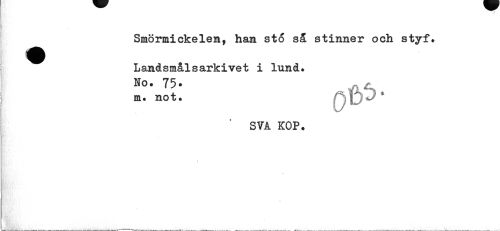 //// Smörmickelen, han sto så stinner och styf. Landsmålsarkivet i lund. //// Ho. 75• , # //// m. not. t~") |*}tJ //// SVA KOP. ////
