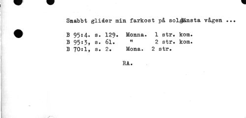 //// Snabbt glider min farkost på sol^fänsta vågen ... //// ^ B 95s4* s. 129* Monna. 1 str. kom. //// B 95:3, s. 61. " 2 str. kom. //// B 70:1, s. 2. Mona. 2 str. //// RA. ////