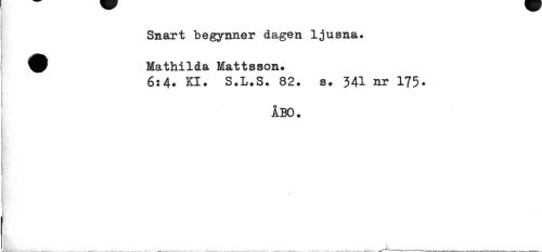 //// Snart begynner dagen ljusna. Mathilda Mattsson» //// 6:4» Kl. S.L.S. 82. s. 341 nr 175. //// ÅBO. //// * ////