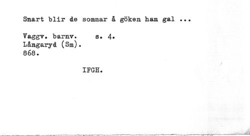//// Snart blir de sommar å göken han gal ... Vaggv. barnv. s. 4» 868. //// IFGH. ////