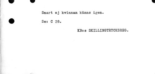//// Snart ej kvinnan känns igen. Se: C 23. //// KB:s SKILLINGTRYCKSREG. ////