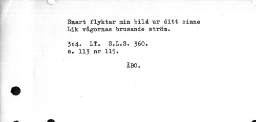 //// » //// Snart flyktar mim bild ur ditt sinne Lik vågornas brusande ström. //// 3:4. LT. S.L.S. 360» s. 113 nr II5• //// ÅBO. ////
