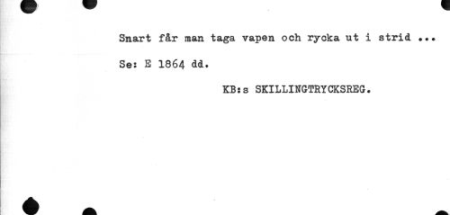 //// Snart får man taga vapen och rycka ut i strid ... //// Se: B 1864 dd. //// KB:s SKILLINGTRYCKSREG. ////