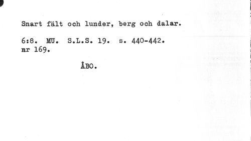 //// f //// Snart fält och lunder, berg och dalar. //// f //// 6:8. HB. S.L.S. 19. s. 440-442. //// nr I69. //// ÅBO. //// I i //// • I ////