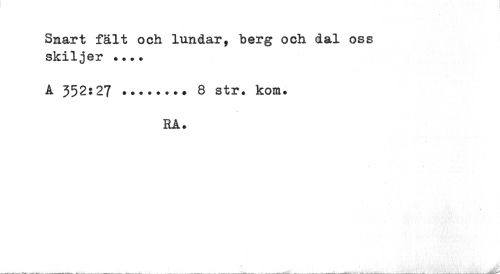 //// Snart fält och lundar, berg och dal oss skiljer ... //// A 352*27 ... 8 str. kom. //// RA. ////