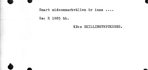 //// Snart midsommarkvällen är inne ... //// Se: E 1885 hh. //// O: s SKILLINGTRYCKSREG. //// i. ////