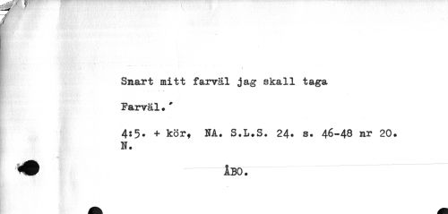 //// ' vj^r» • ' i ' //// Smart mitt farväl jag skall Farväl•' //// 4:5» + körf NA. S.L.S. 24- s. 46-48 mr 20. N. ////
