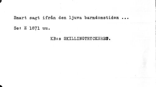 //// Smart sagt ifrån den ljuva barndomstiden •?• //// Se: B 1871 uu. //// KB: s SKILLINGTRYCKSREff* //// i //// k ////