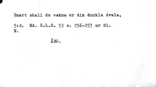 //// / //// Snart skall du vakna ur din dunkla dvala, //// 5:4- KA. S.L.S. 53 s. 256-257 nr 81. //// S. //// ÅBO. //// i //// V!-; å ////
