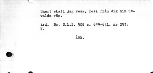//// Snart skall jag resa, resa från dig min utvalda vän. //// 4:4. Br. S.L.S. 508 s. 639-641. nr 253* N. //// ÅBO. //// » ////