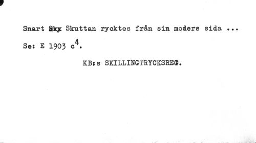 //// Snart Sky Skuttan rycktes från sin moders sida ... //// Ses E 1903 c4. //// KBss SKILLINGTRYCKSREG. ////