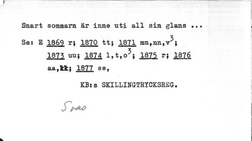//// Snart sosimarn är inne uti all sin glans *.. //// Se: E 1869 rj 1870 tt; 1871 mmfnn,vy; //// 1873 uu# 1874 l,t.o3; 1875 r; 1876 aa,]fck; 1877 ss, //// KBss SKILLINGTRYCKSREG. I //// i //// f //// i //// ; //// i ////