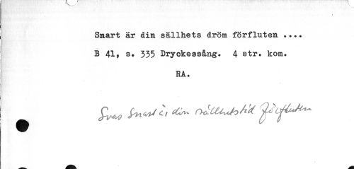 //// / //// Snart är din sällhets åröm förfluten •... B 41, s# 535 Dryckessång. 4 str. kom. //// RA. ////