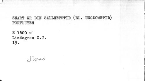 //// f I //// SNART ÄR DIN SÄLLHETSTID (EL. UNGDOMSTID) j //// FÖRFLUTEN //// E 1800 u' Lindegren C.J. //// 19. I //// i ¦ //// s ////