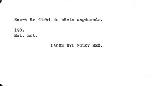 //// Snart är förbi de bästa ungdomsår. 198. //// Mel. not. //// LAGUS NYL FOLKV REG. //// k ////