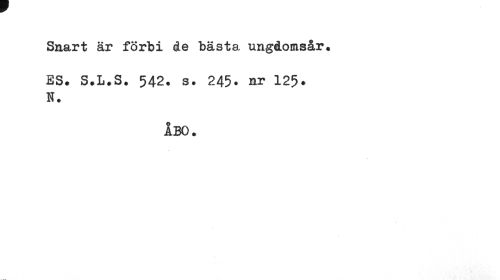 //// Snart är förbi de bästa ungdomsår. //// ES. S.L.S. 542. s. 245* nr 125* N. //// ÅBO. ////