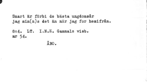 //// f //// : //// t //// Snart är förbi åe "bästa ungdomsår //// jag min(n)s det än när jag for hemifrån. | //// i //// 8:4» I.H.l. Gammals visb# ! //// nr 54* //// ÅBO. I //// f //// i l //// i //// i i //// ! fl //// i //// V; ////