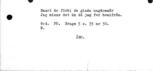 //// Snart är förbi de glada ungdomsår ^^ Jag minns det än då jag for hemifrån. //// 8:4. PS. Brage 5 s. 35 nr 30. N. //// ÅBO. //// - / ////