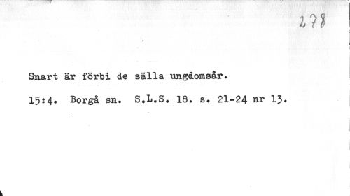 //// i?? //// » ; riv.' •!•, f //// 0 //// i //// Snart är förbi de sälla ungdomsår. //// 15:4. Borgå sn. S.L.S. 18. s. 21-24 nr 13. ////