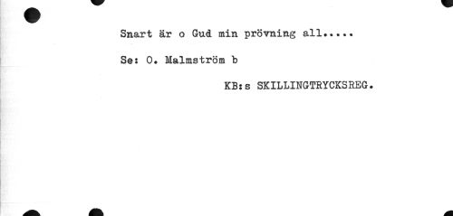 //// Snart är o Gud min prövning all... //// Se: 0. Malmström b //// KB:s SKILLINGTRYCKSREG. ////