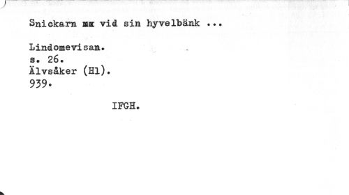 //// Snickarn ms vit sin hyvelbänk ... //// Lindomevi sam» s. 26. //// Ilvsåker (Hl). //// 939• //// IFGH. ////