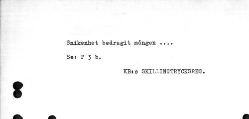 //// * //// , ••• ' ' » 'V //// Snikenhet bedragit mången Se: P 3 b. //// KBss SKILLINGTRYCKSREG. ////