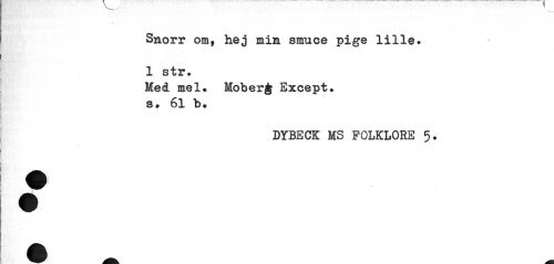 //// Snorr om, hej mim smuce pige lille. 1 str. //// Med mel. Moberg Except. s, 61 b. //// DYBECK MS FOLKLORE 5. ////